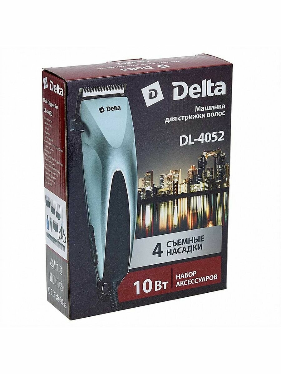 Машинка для стрижки Delta DL-4052 синий, 10Вт, 4 съемных гребня (24) .