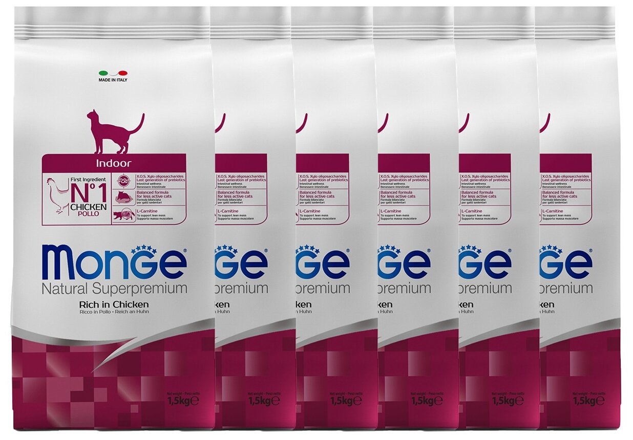Купить Сухой корм для кошек Monge Natural Superpremium, для живущих в помещении, с курицей 6 шт. х 1.5 кг