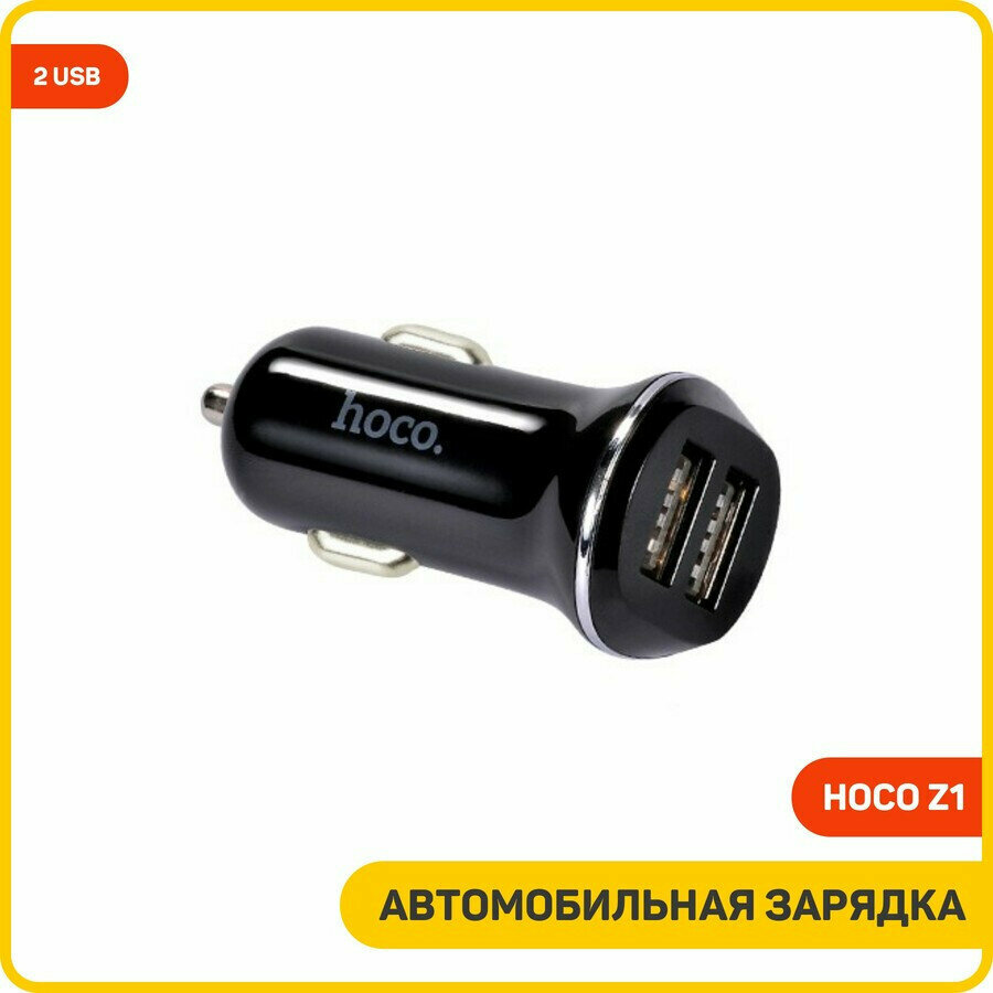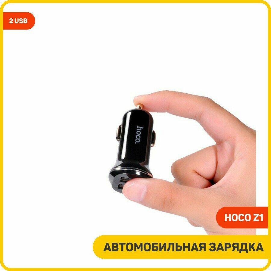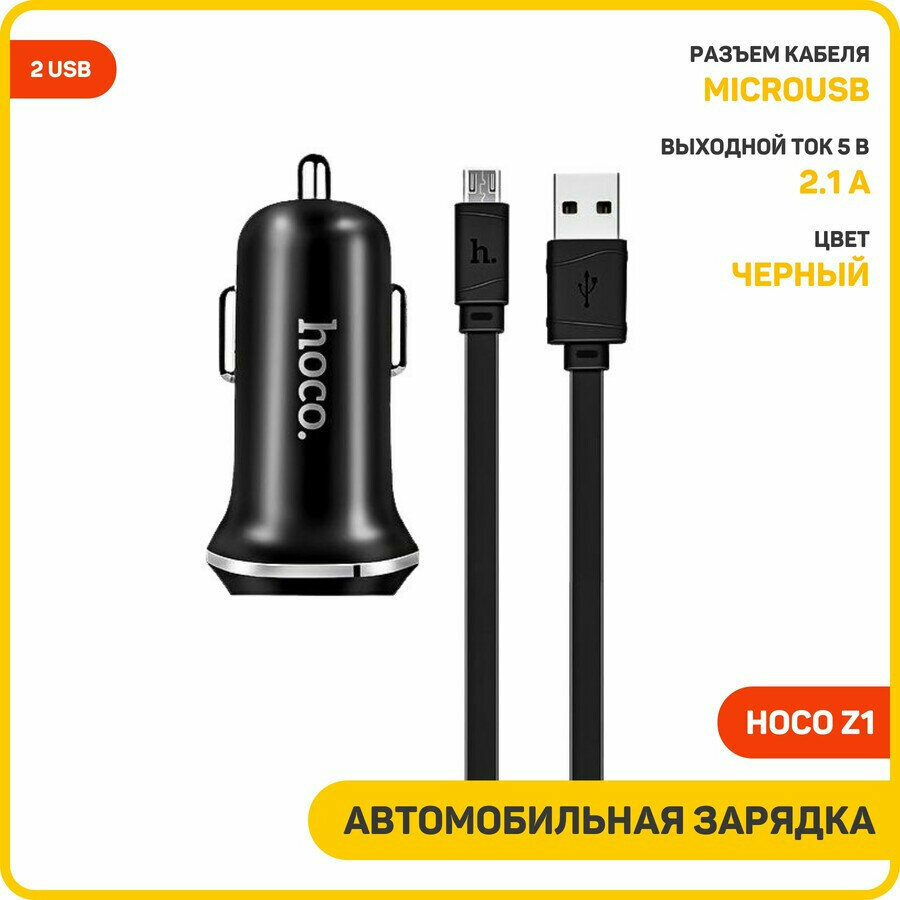 Автомобильное зарядное устройство Hoco Z1 Black зарядка 2.1А 2 USB-порта + кабель microUSB, чёрный