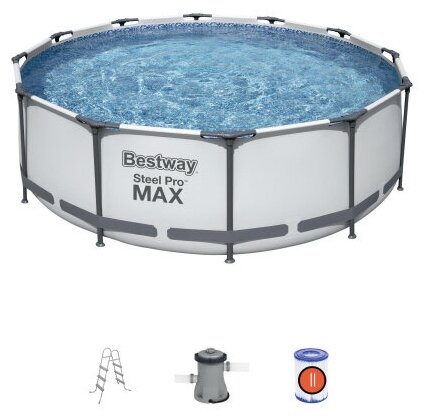 Бассейн Bestway "Steel Pro MAX", каркасный, диаметр 366 см, высота 100 см, объем 9150 л, фильтр-насос, 56418