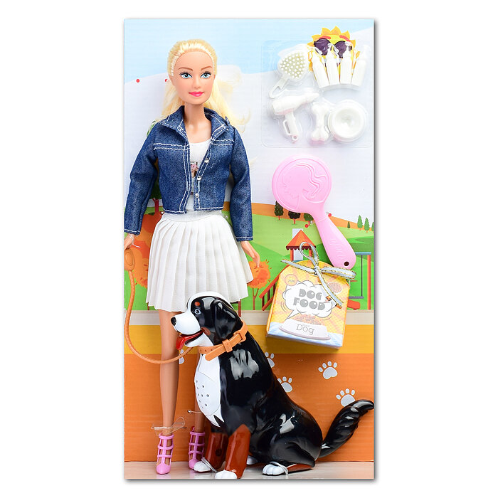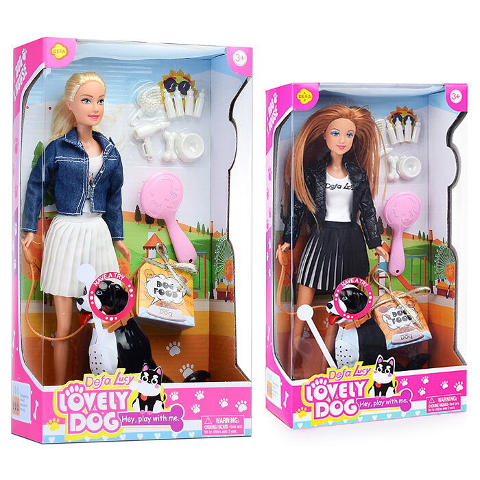Игровой набор Кукла Defa Lucy На прогулке в черной куртке с собакой, игровые предметы, 29 см 8428d/черная