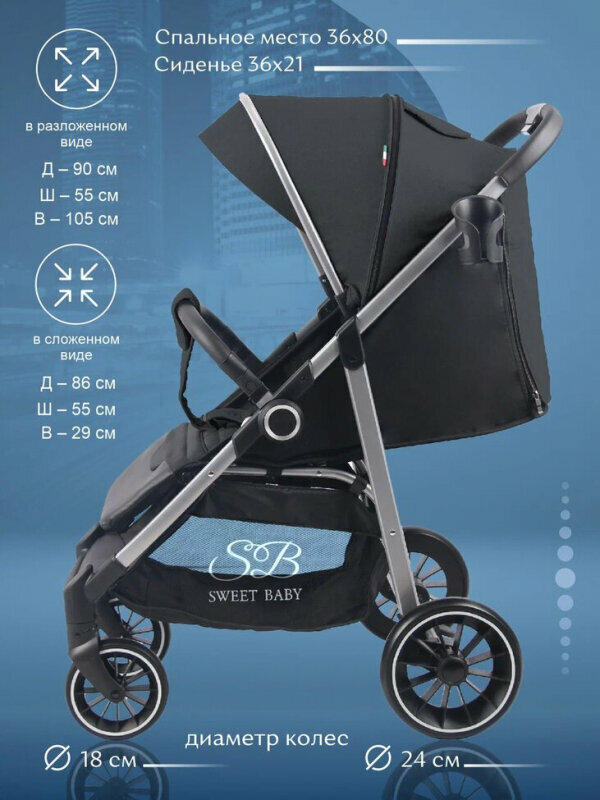 Прогулочная коляска Sweet Baby Armonia Black/White интересное: