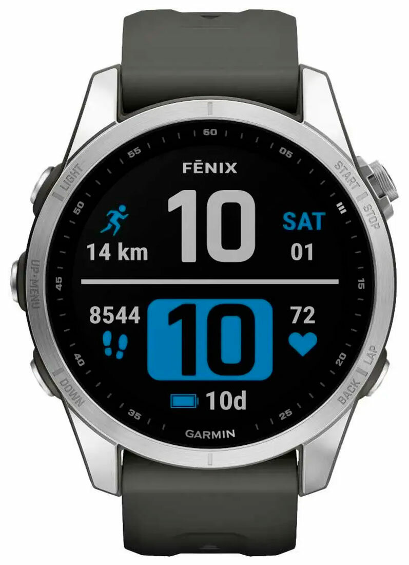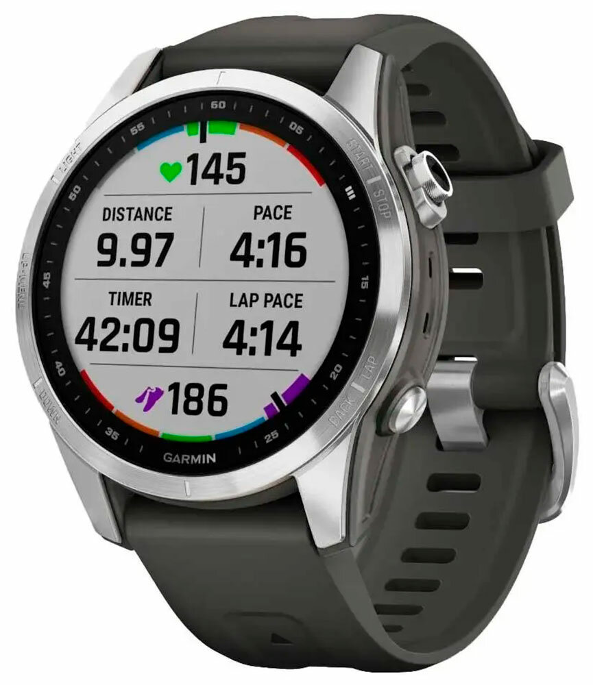 Умные часы GARMIN FENIX 7S серебристые с графитовым силиконовым ремешком