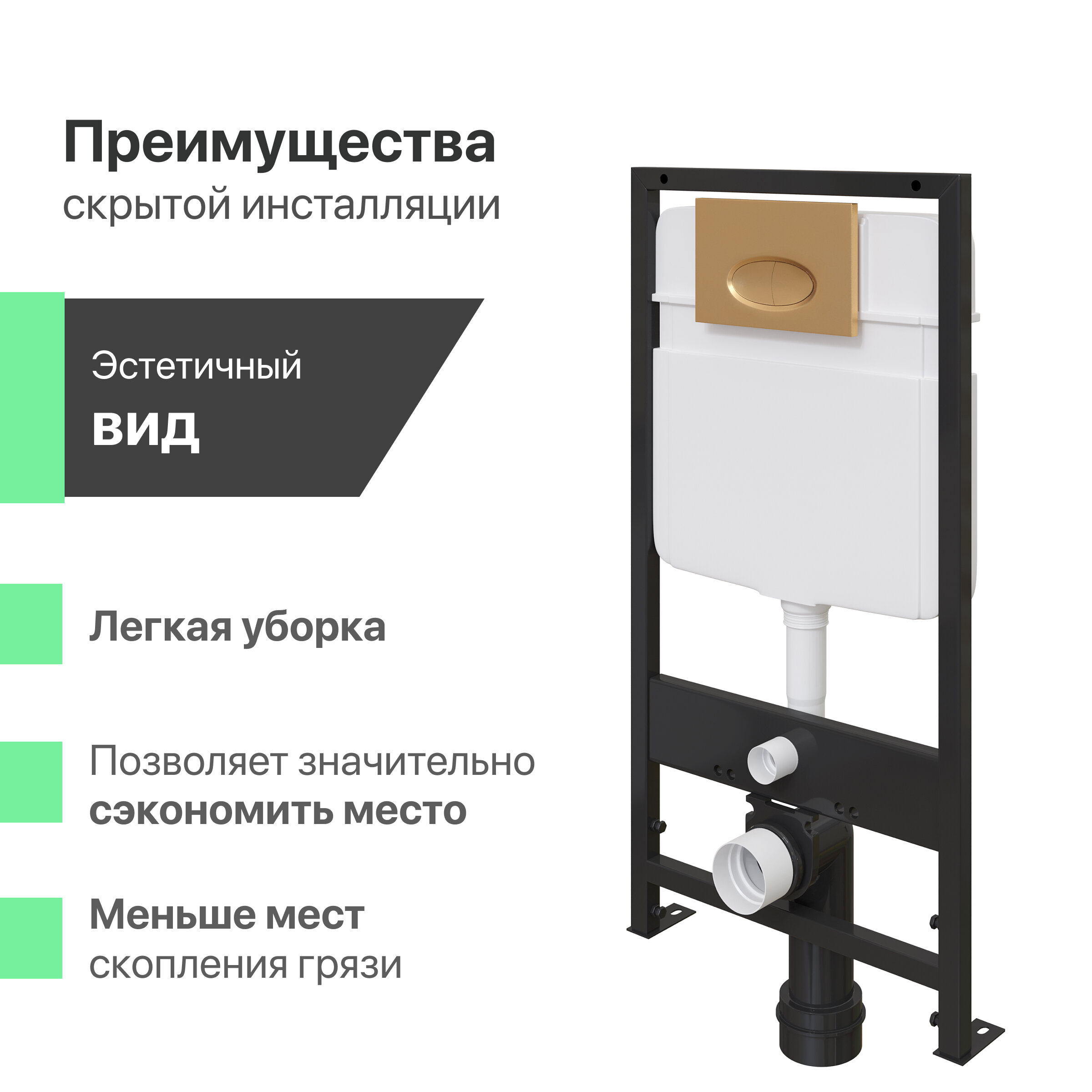Комплект Унитаз подвесной Ceramica Nova Metric Rimless CN3007 + Система инсталляции для унитазов EWRIKA ProLT 0026-2020 + Кнопка смыва EWRIKA 0053 золото матовое интересное: