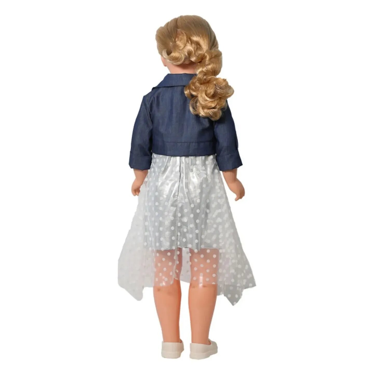 | Комплектация | кукла, платье с сеткой в горошек, джинсовая куртка, трусики, туфли |