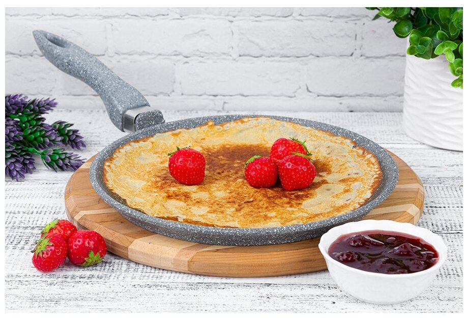 Сковорода блинная 20 см Elan Gallery гармония вкуса Серый мрамор, несъёмная ручка интересное: