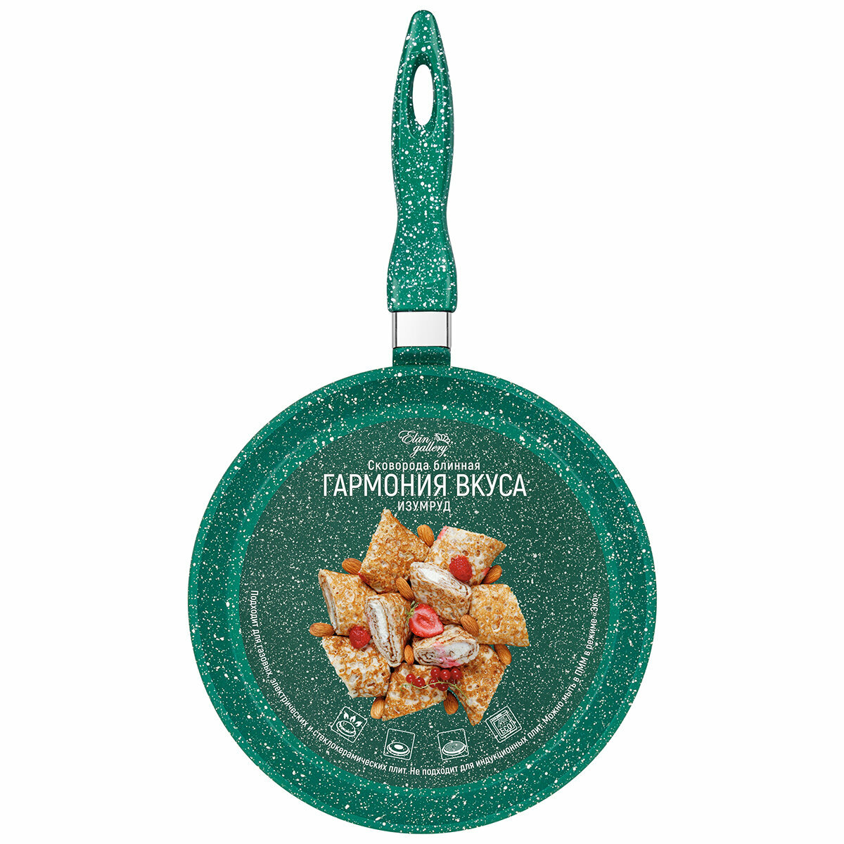 Купить Сковорода блинная 22 см Elan Gallery гармония вкуса Изумруд с несъёмной ручкой