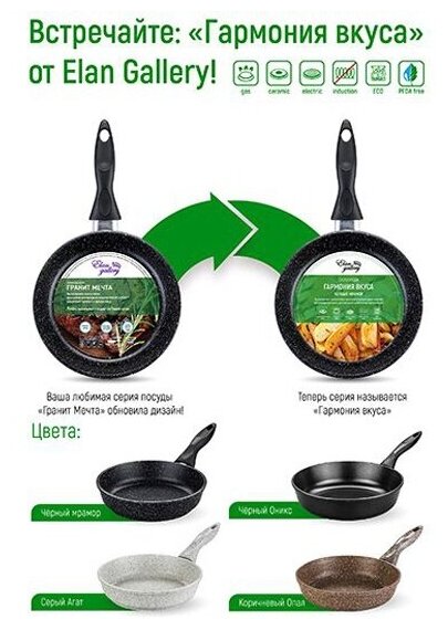 Сковорода глубокая 22 см гармония вкуса "Черный мрамор" без крышки, с/р, 43*23*9 см интересное: