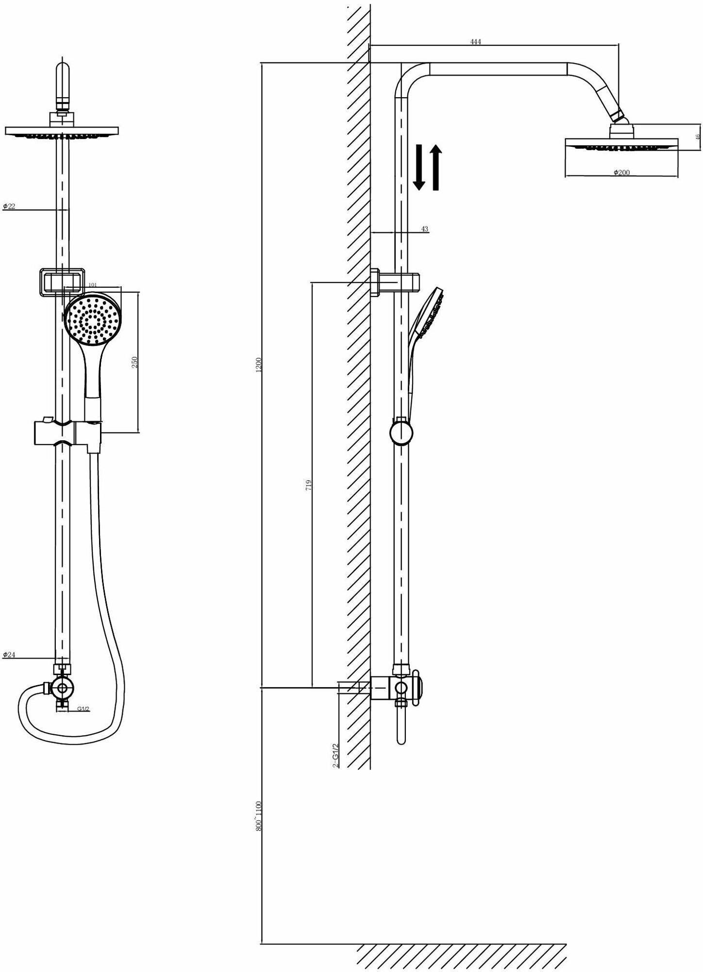 | Форма верхнего душа | круглая |