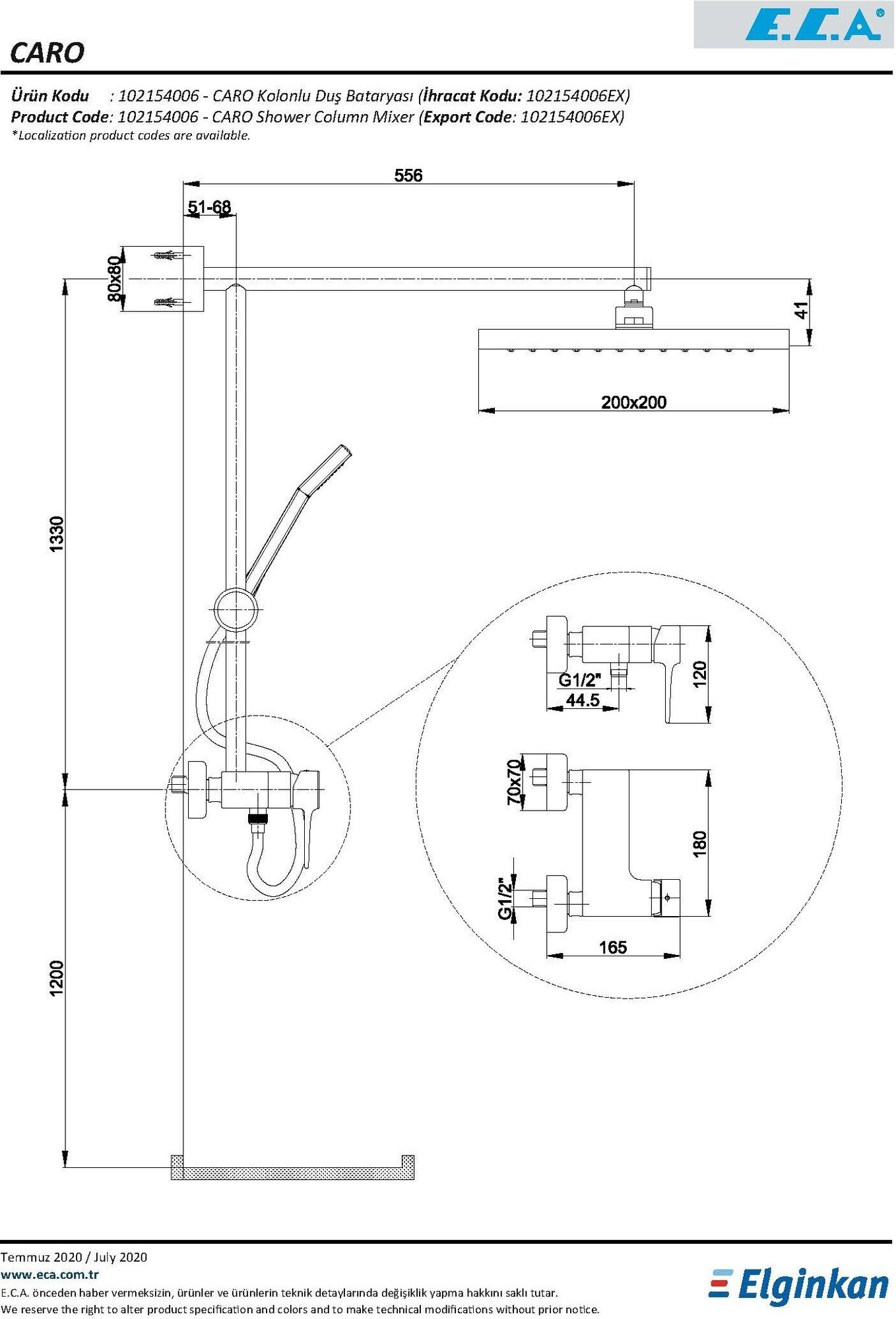 Купить Душевая система 200 мм E.C.A Caro 102154006EX