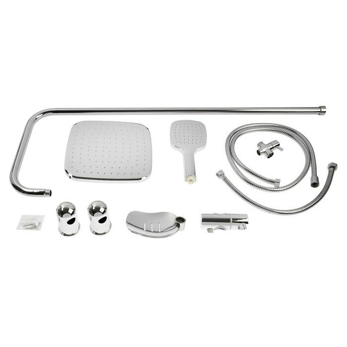 Душевая система ZEIN Z1004, тропическая и ручная лейка, шланги, стойка, мыльница, хром 5478298