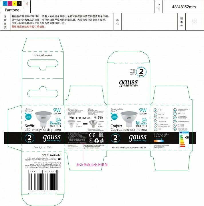 (14 шт.) Светодиодная лампочка Gauss MR16 9Вт 220В 4100K GU5.3