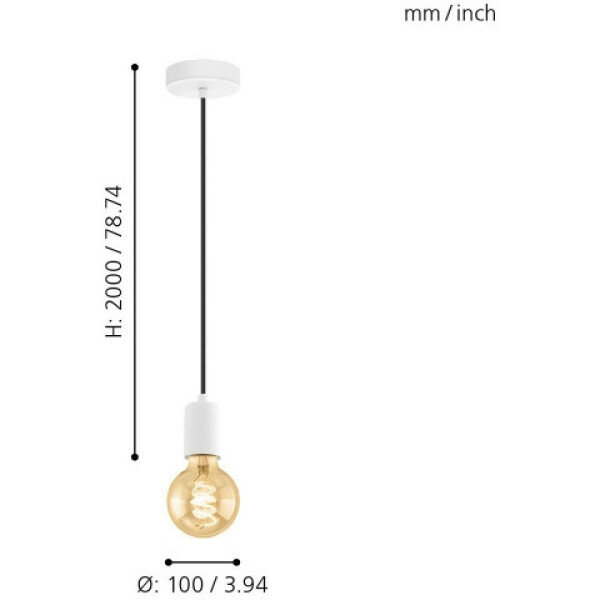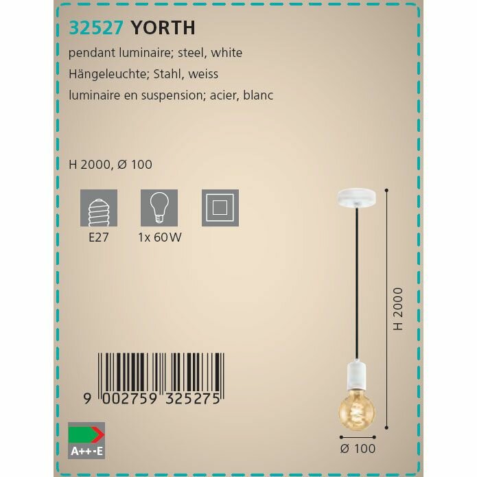 32527 Подвес YORTH, 1х60W (E27), Ø100, H2000, сталь, белый, черн. кабель