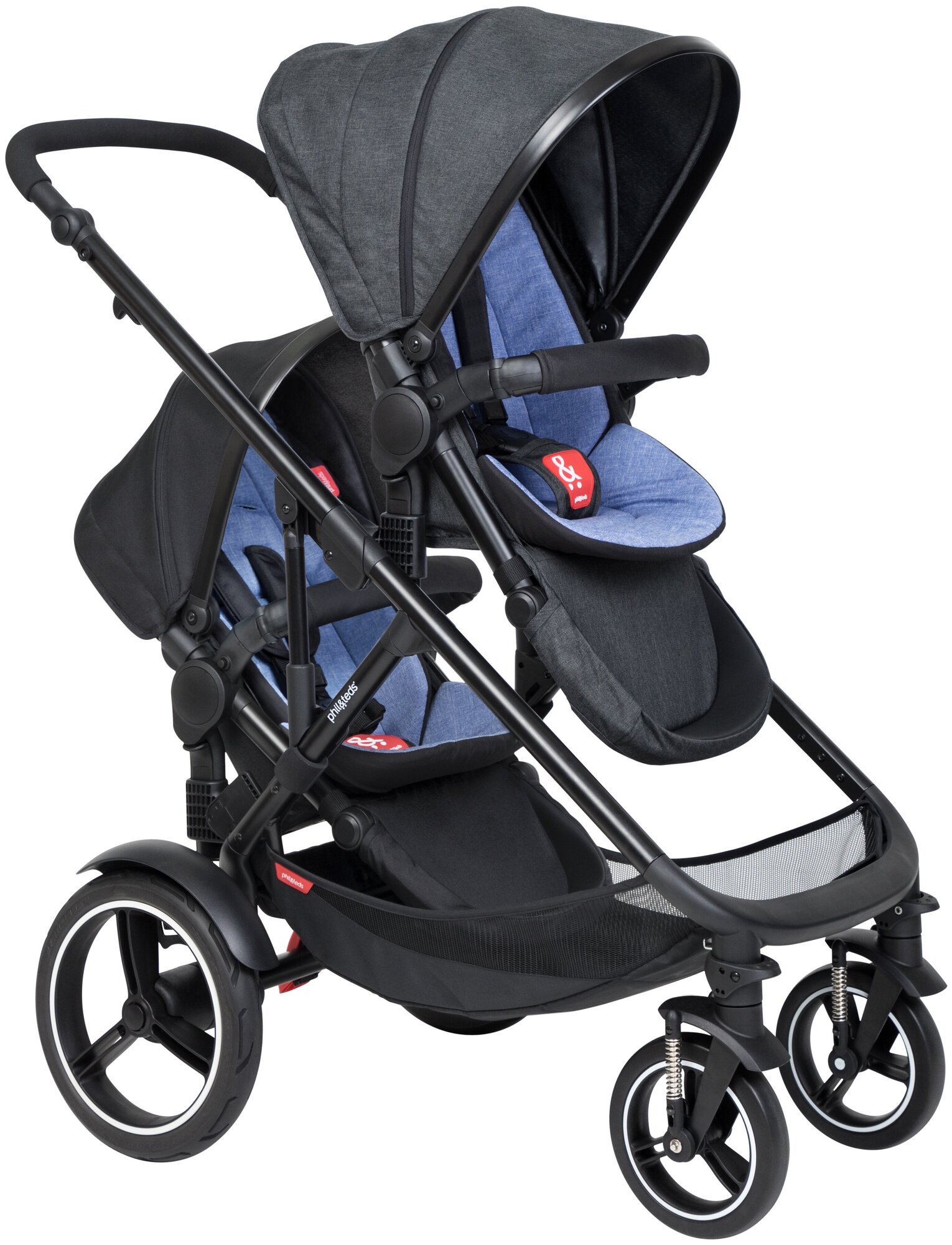 Прогулочная коляска для двойни PHIL&TEDS Voyager 2019 ( с доп. сиденьем), sky blue, цвет шасси: черный
