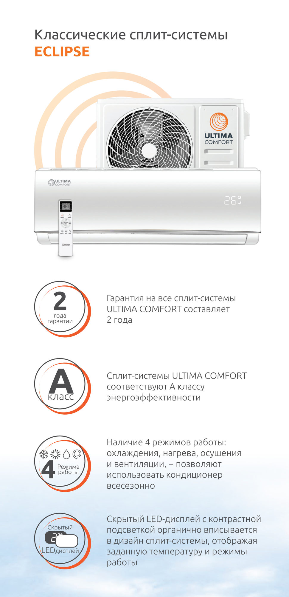 Кондиционер настенный Ultima Comfort Eclipse ECL-09PN , белый