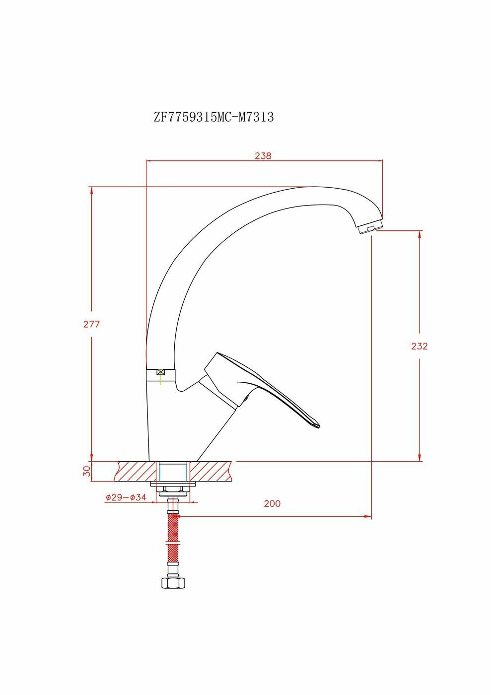 CRON Смеситель для кухни (Zn), гайка (Керамика) хром, CN77318-WC