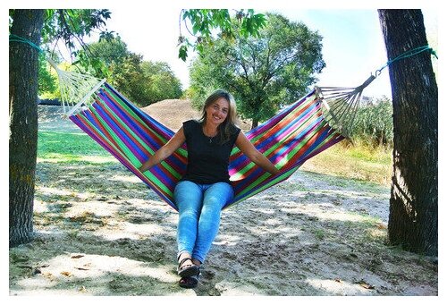 Гамак с креплением (стропы с петлями + s), из хлопка, 195х100 см