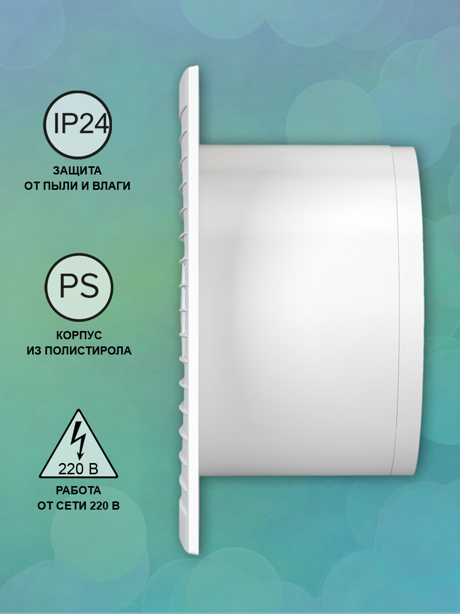 Вентилятор осевой / вытяжка в ванную / вытяжка в туалет d100 мм, белый