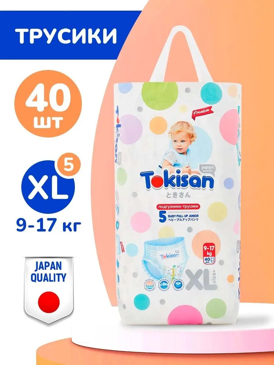 Подгузники трусики 5 XL детские Tokisan, 9-17 кг, 40 шт с индикатором влаги Super Soft, дневные / ночные