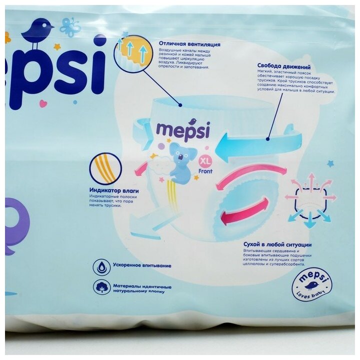 Подгузники-трусики Mepsi размер XL (12-22 кг), 38 шт