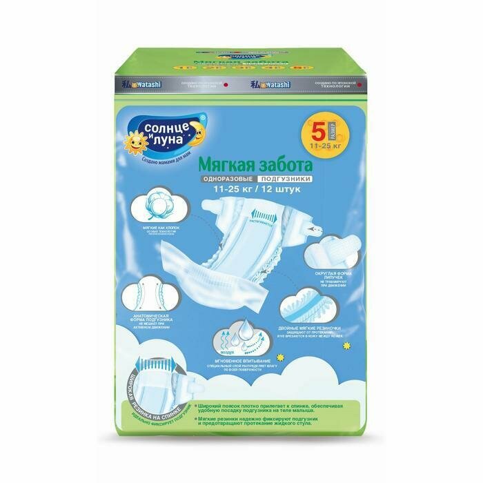 Солнце И луна мягкая забота Подгузники одноразовые для детей 5/XL 11-25 кг 12шт