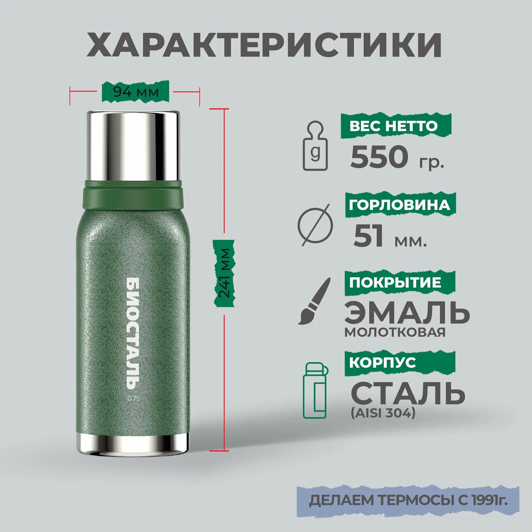 Термос BIOSTAL Охота NTS-750G ш/г суповой с ложкой