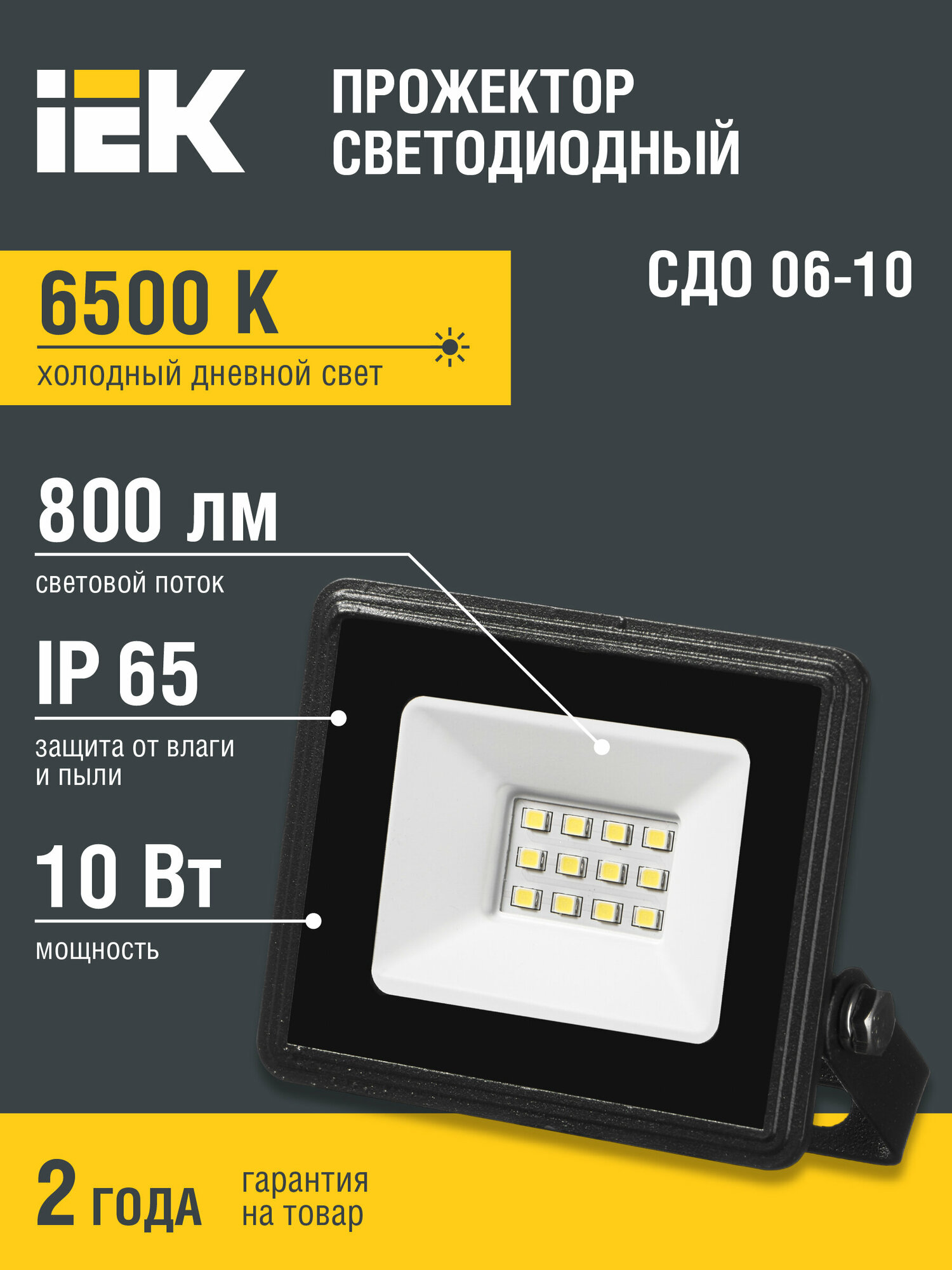 Прожектор светодиодный IEK СДО 06-10, 10 Вт, 6500 К, IP65, черный