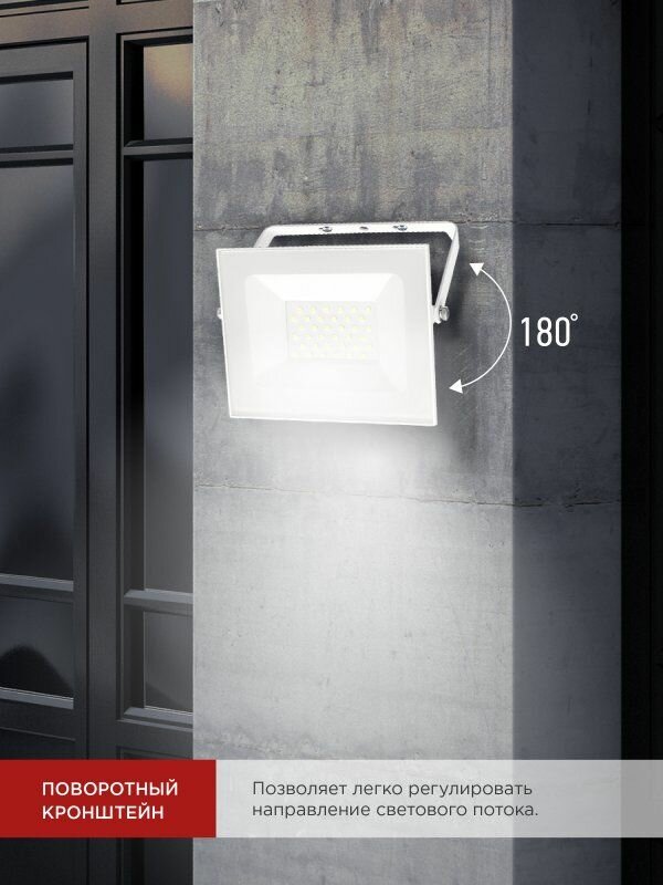 Прожектор светодиодный 30Вт, защита IP65, холодный свет, белый корпус In Home