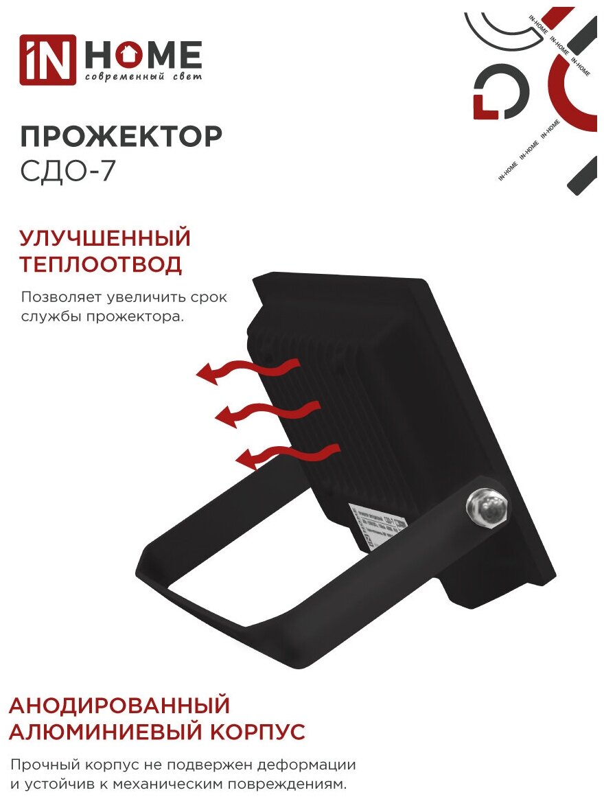 INhome Прожектор светодиодный IN HOME СДО-7, 50 Вт, 230 В, 6500 К, IP65, черный