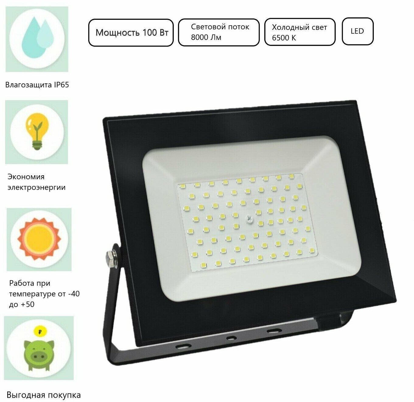 Прожектор светодиодный СДО-7 100Вт 230В 6500К IP65 черный IN HOME, для дома и сада