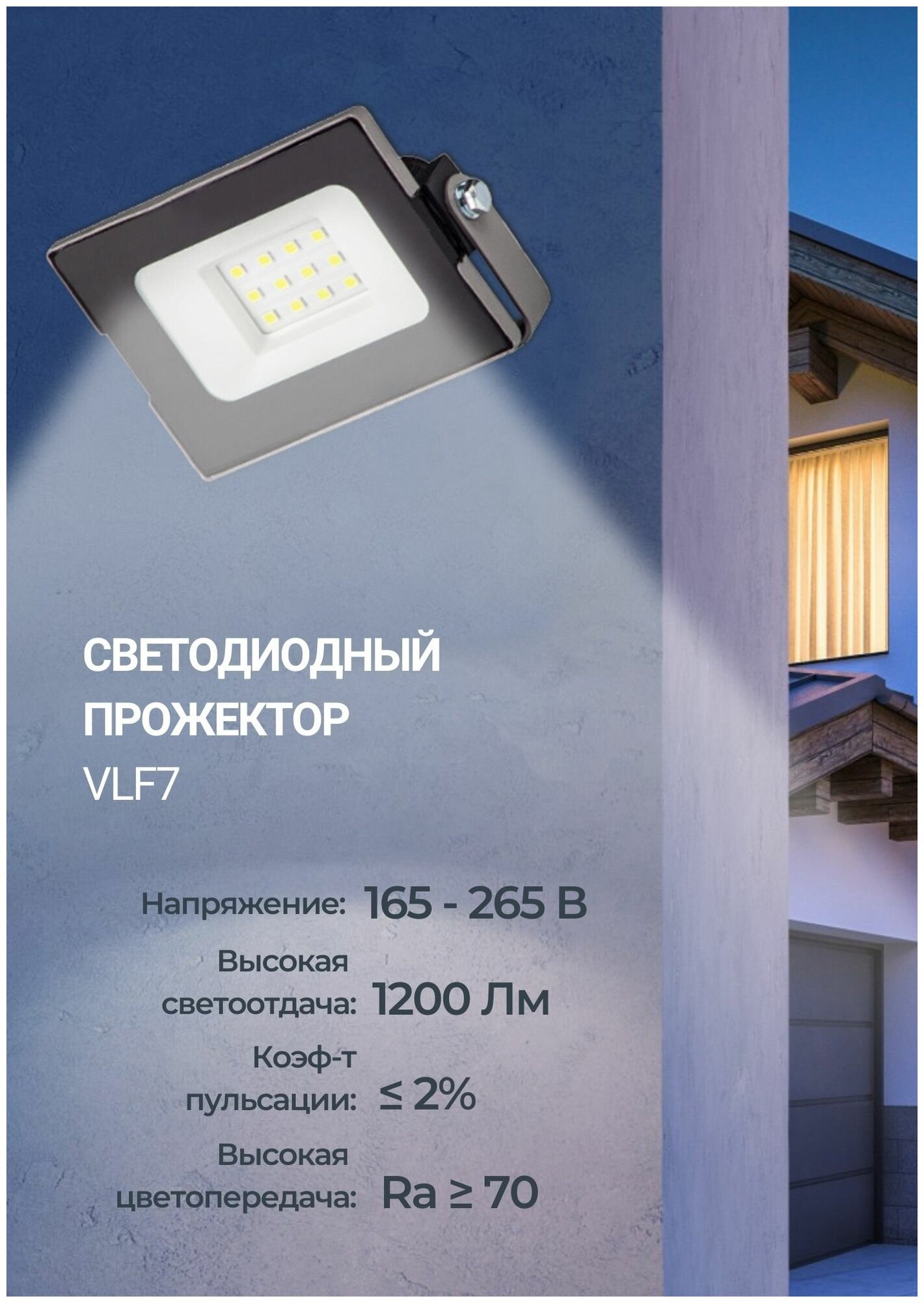 Прожектор светодиодный 10Вт 6500К 1200Лм 220V IP65 (VLF7-10-6500-mini-G) интересное: