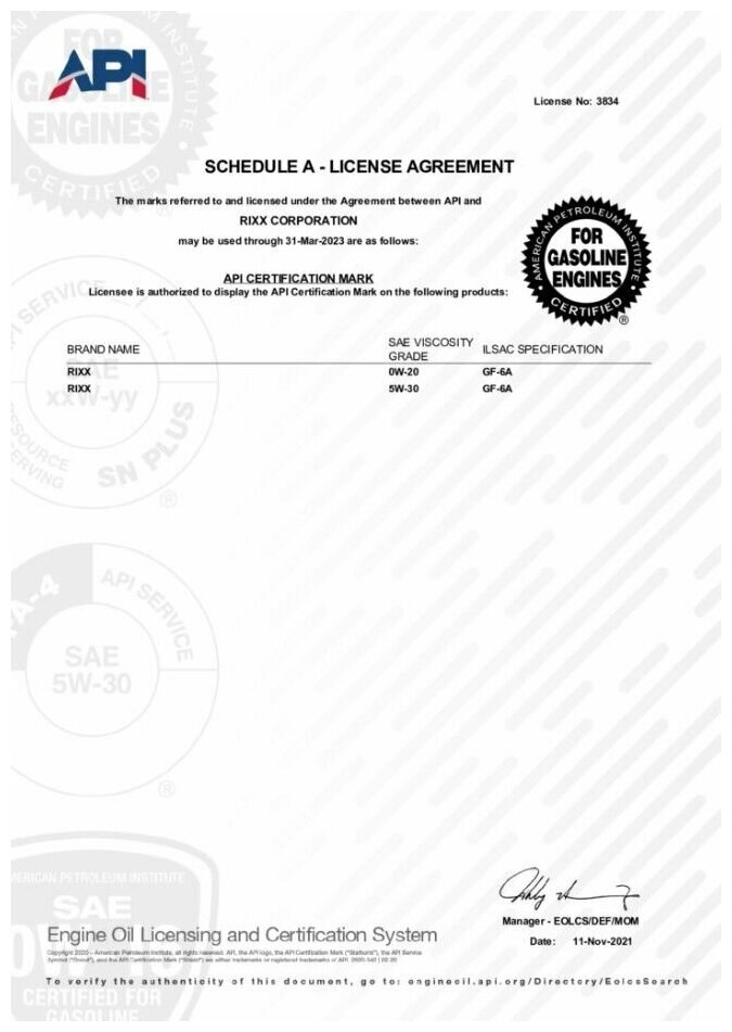 Моторное масло синт RIXX TP N 0W-20 GF-6A PAO+ 4 л (шт.) интересное: