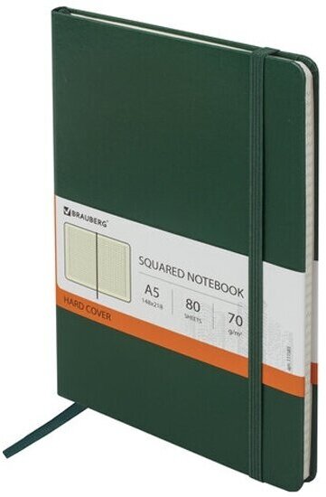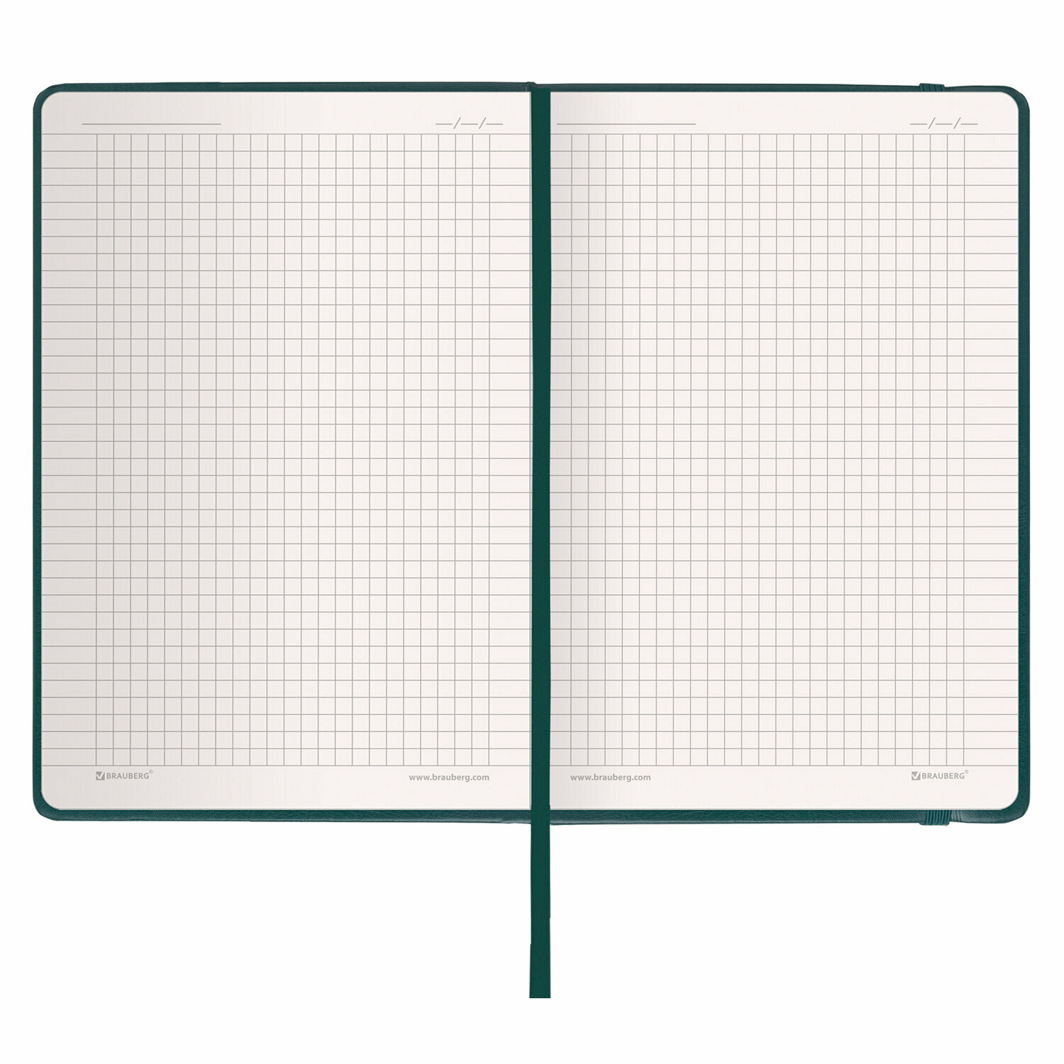 Бизнес-блокнот, записная книжка, тетрадь А5 (148x218 мм), Brauberg Metropolis, балакрон, 80 л, резинка, клетка, зеленый, 111583