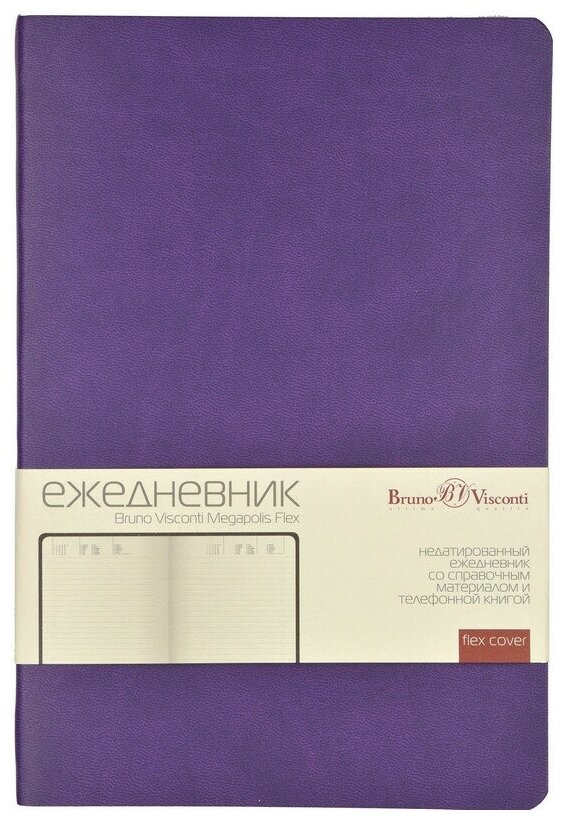 Ежедневник недатированный Bruno Visconti "MEGAPOLIS FLEX" гибкий, Soft touch, фиолетовый А5, Арт. 3-531/19