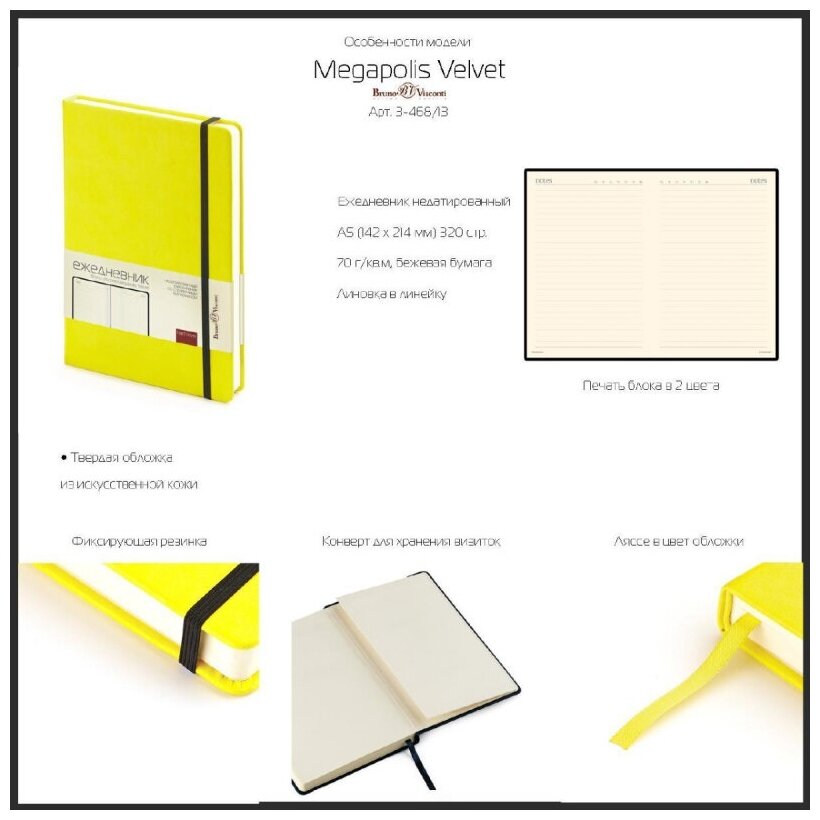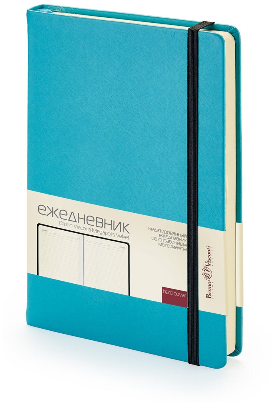 Ежедневник Bruno Visconti недатированный, А5 (142 х 214 мм.), "MEGAPOLIS VELVET" морская волна 320 стр., Арт. 3-468/16