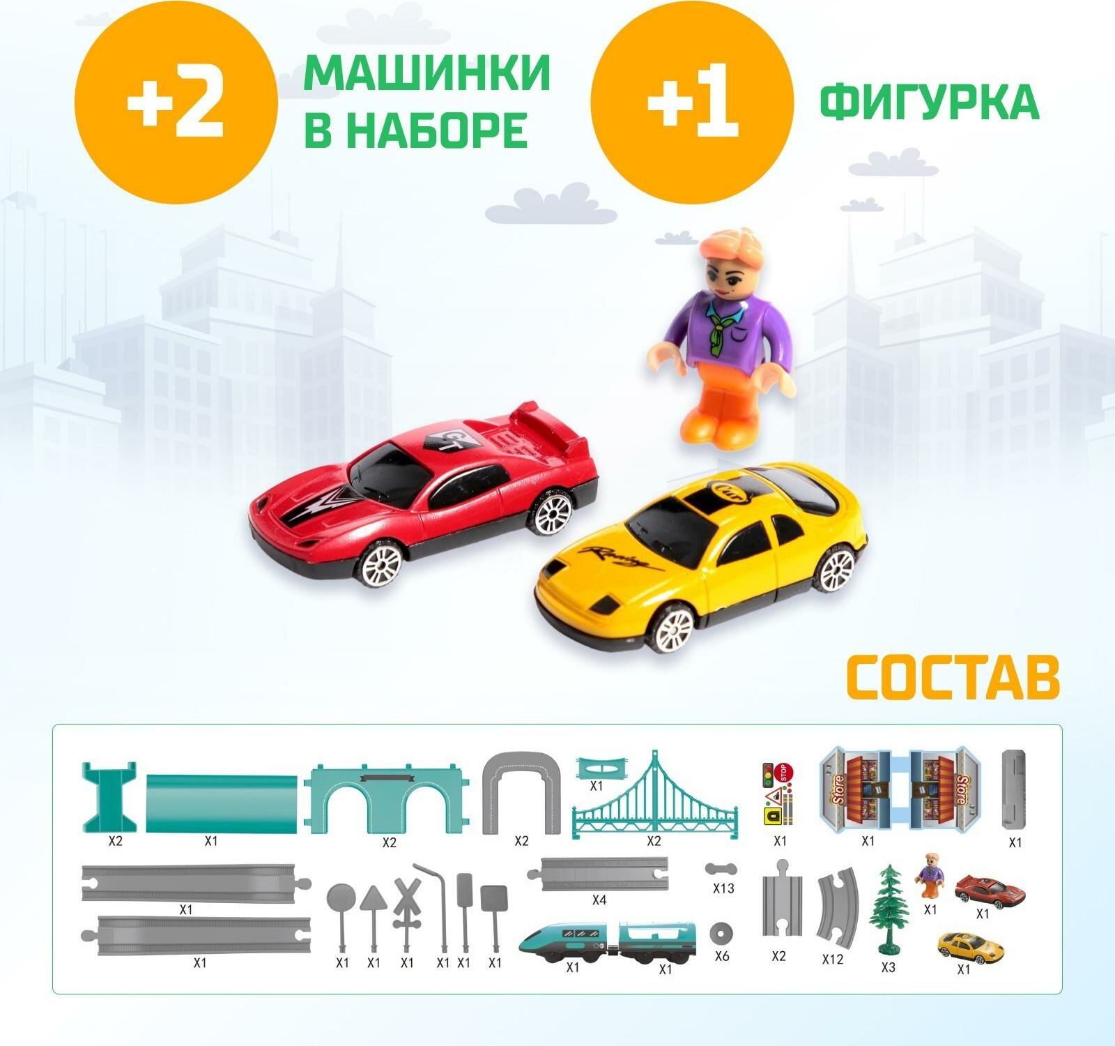Купить Автоград Железная дорога «Экспресс», 66 деталей, работает от батареек, подходит для деревянных железных дорог