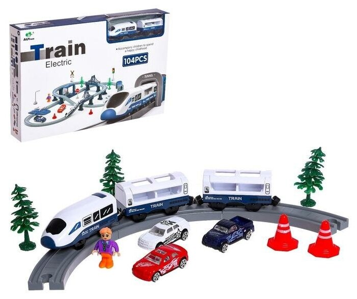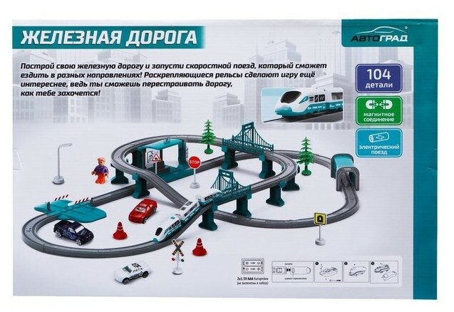 Купить Автоград Железная дорога «Экспресс», 104 детали, работает от батареек, подходит для деревянных железных дорог