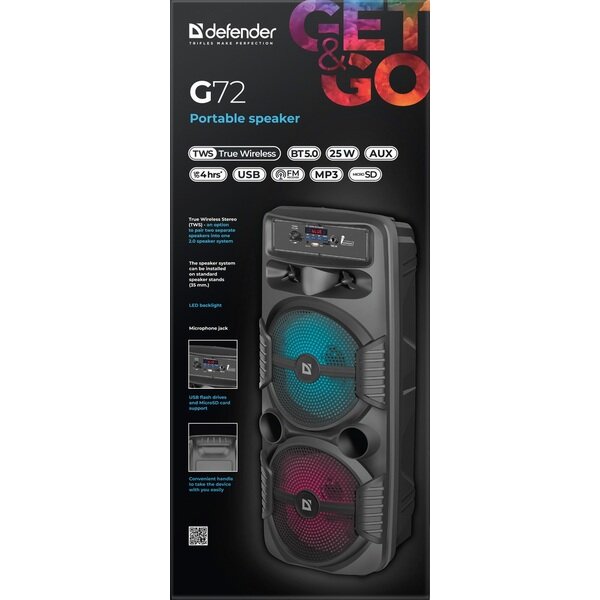 Купить Портативная акустика DEFENDER G72 Bluetooth,25Вт, FM/USB/MIC