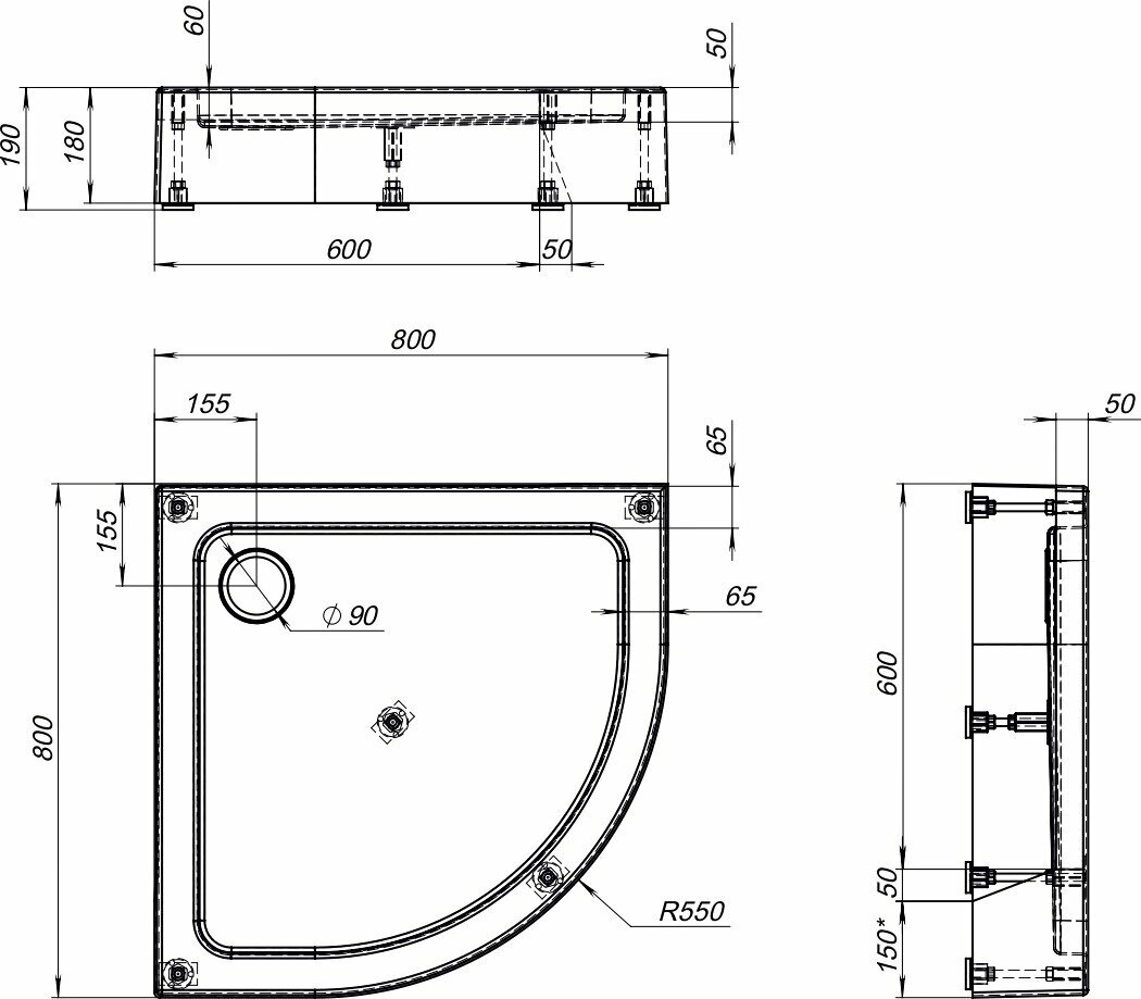 Поддон для душа Aquanet GL180 80x80 четверть круга 265569 интересное: