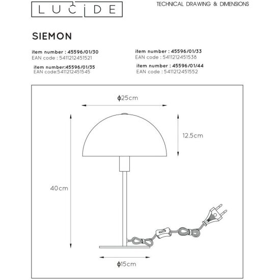 Lucide Интерьерная настольная лампа Siemon 45596/01/30