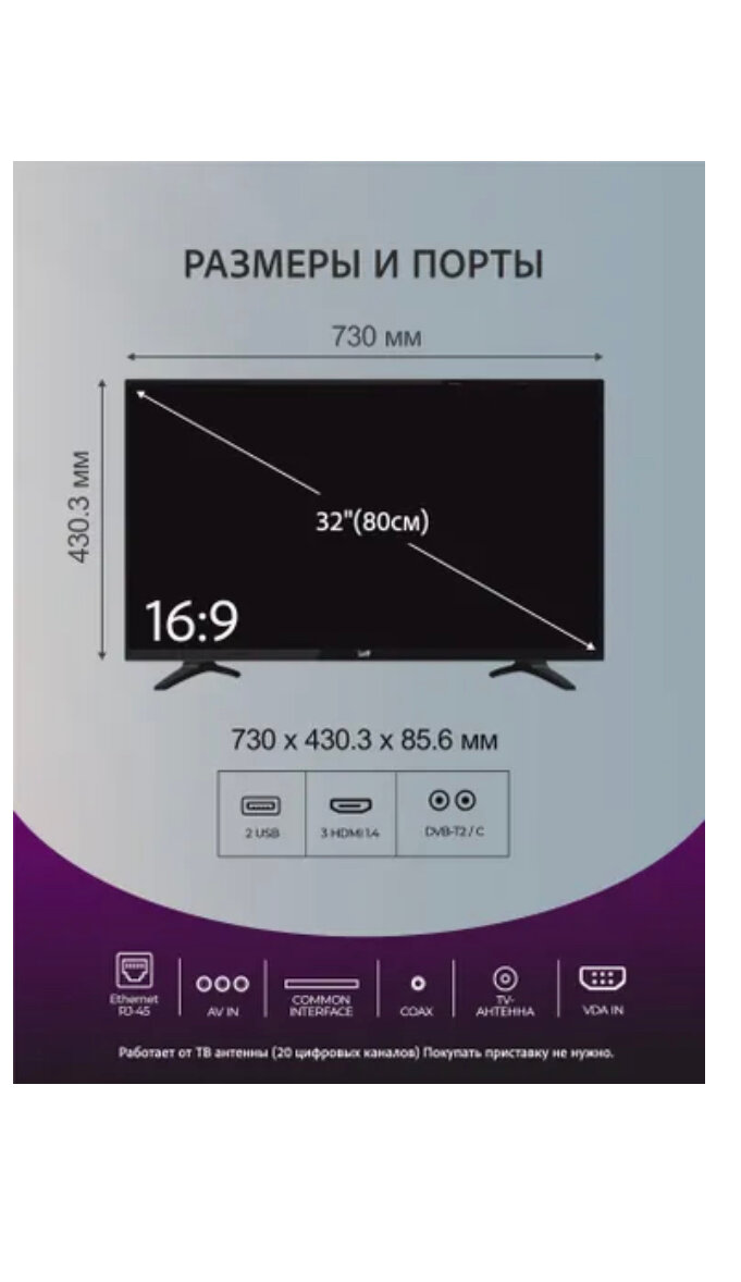 | Дополнительная информация | таймер сна, родительский контроль, режим «Отель», USB 2.0 |