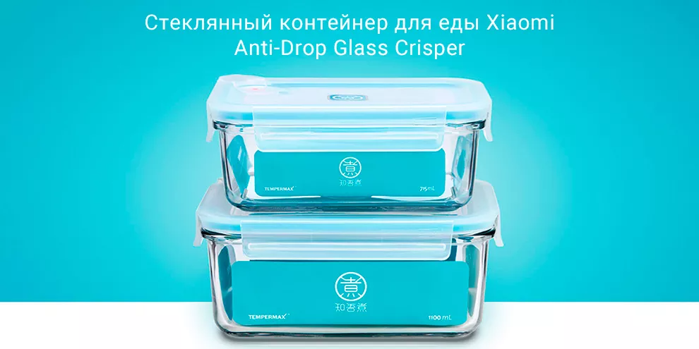 Xiaomi Контейнер для еды Anti-Drop Glass Crisper 0.715 л, голубой/прозрачный интересное: