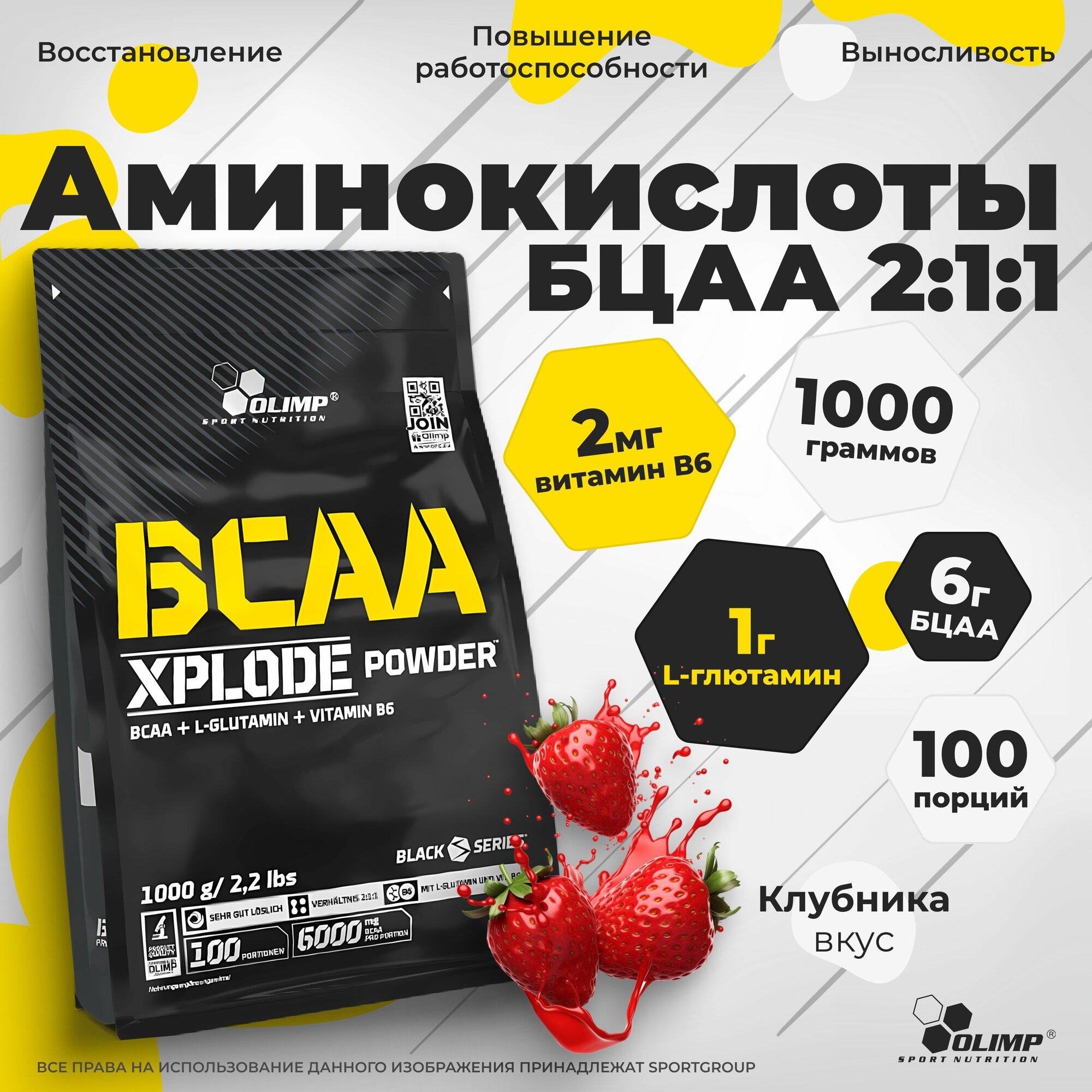 Аминокислоты BCAA (БЦАА) Olimp BCAA Xplode (1000 г) Клубника