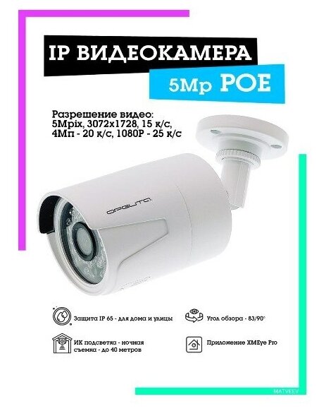 Видеокамера цифровая c POE (3072*1728, 5Mpix, 3,6мм, металл) VNI39 интересное: