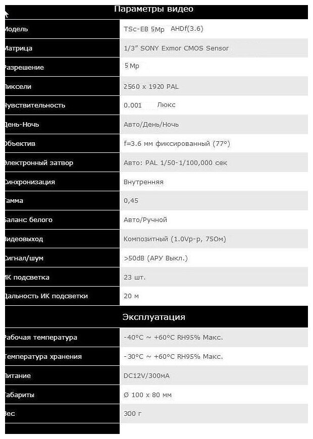 Уличная TSc-EB 5Mpx.AHD 3.6, 5 МП-камера в металлическом корпусе с защитой от пыли и влаги по стандарту IP66. интересное: