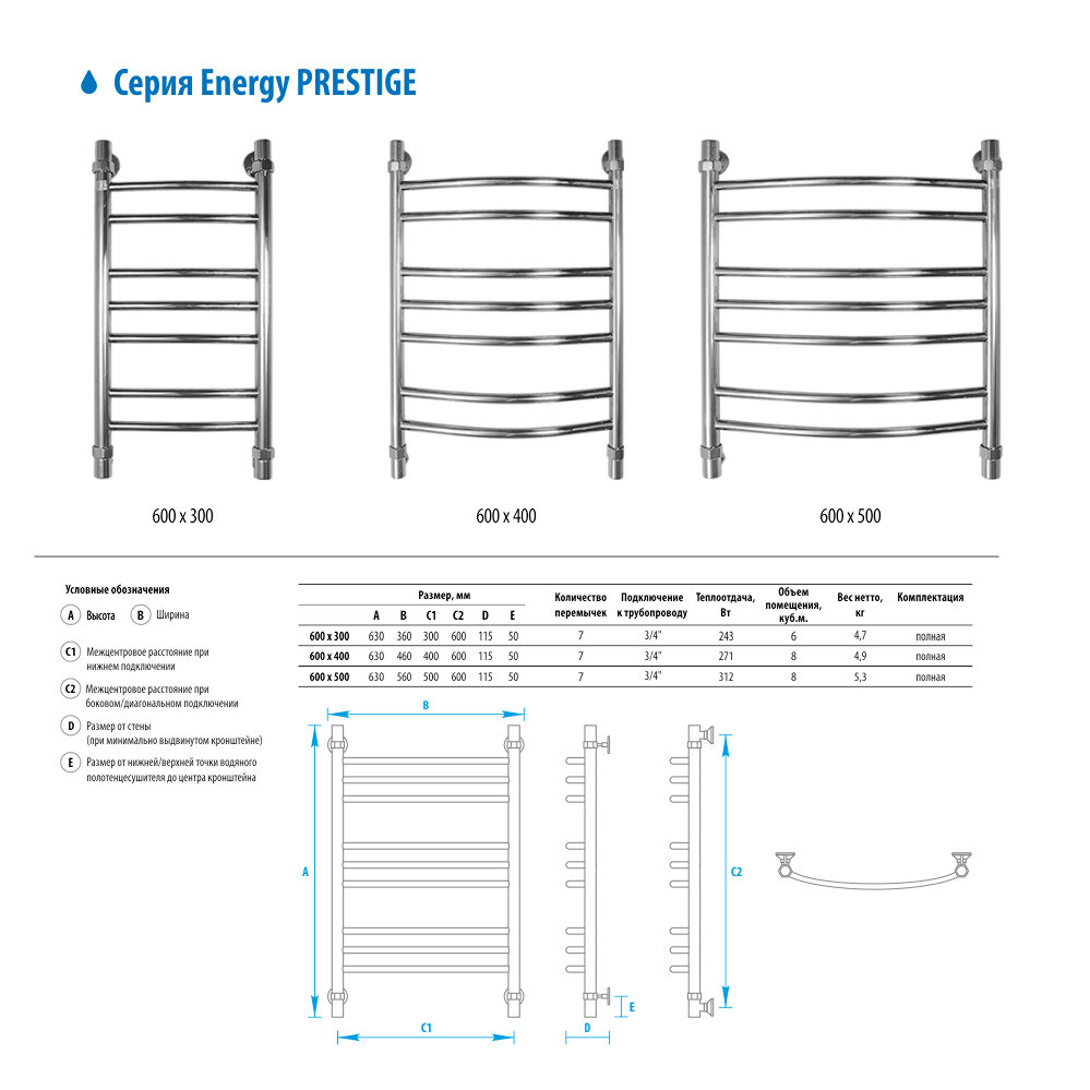 Полотенцесушитель Energy Prestige 60х50 хром интересное: