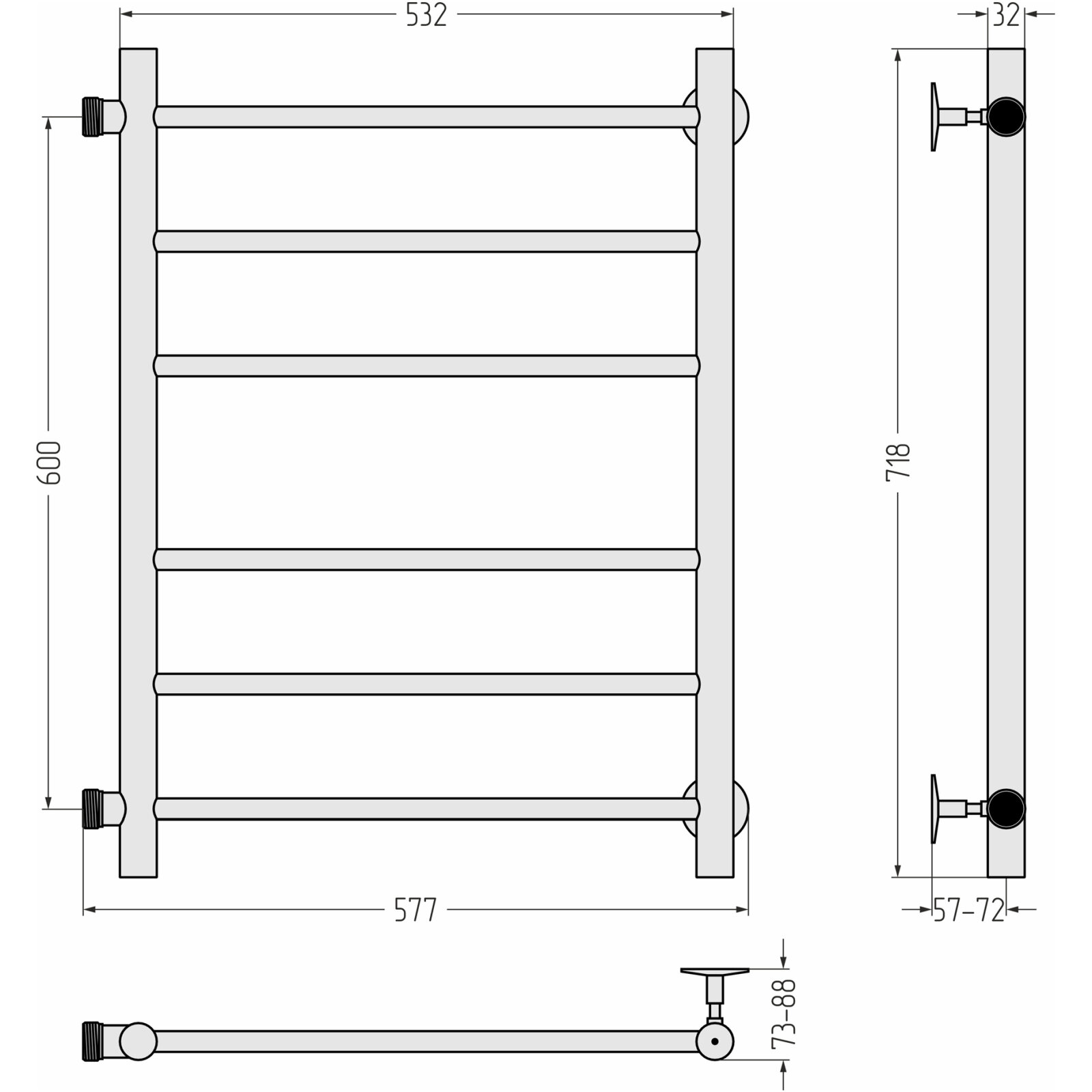 Полотенцесушитель водяной стилье "Версия-Б" 600х400 (3+3) П 18