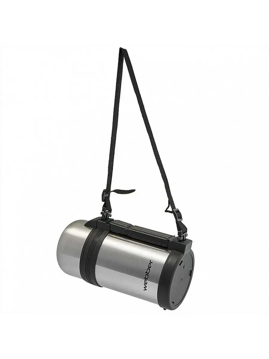 Термос Weber SST-1000P, 1000 мл, нержавеющая сталь, с кнопкой, ремень для переноски, стальной