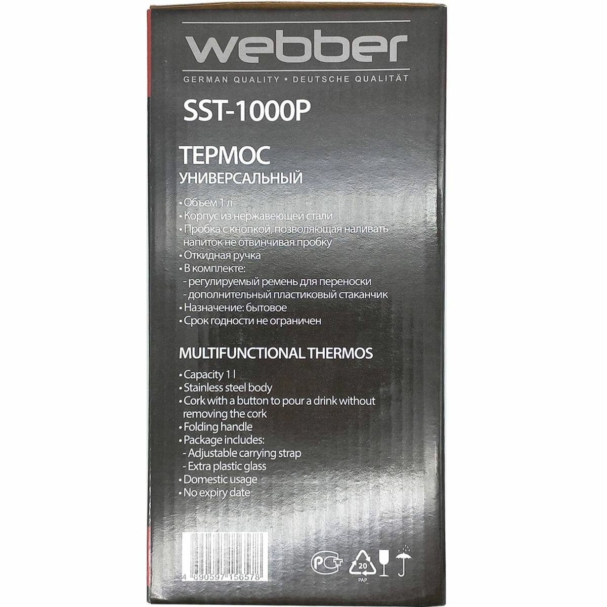 Классический термос Webber SST, 1 л, SST-1000P