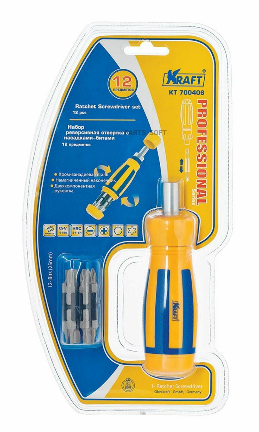 KRAFT AUTOMOTIVE KT700406 Набор реверсивная отвертка с насадками-битами 12 предметов
